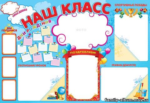 Расписание уроков, алфавит и шаблоны для фотографий всего класса.